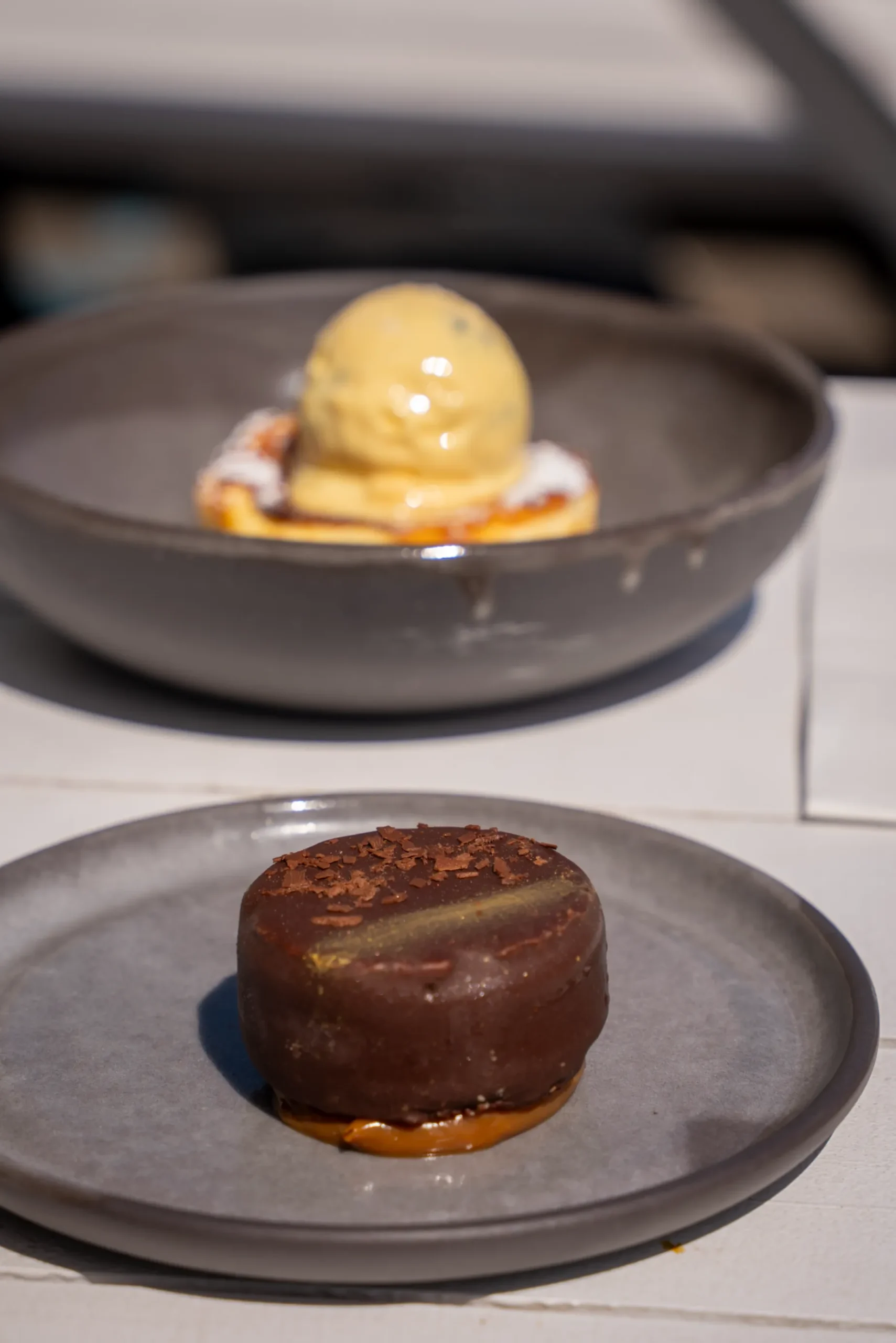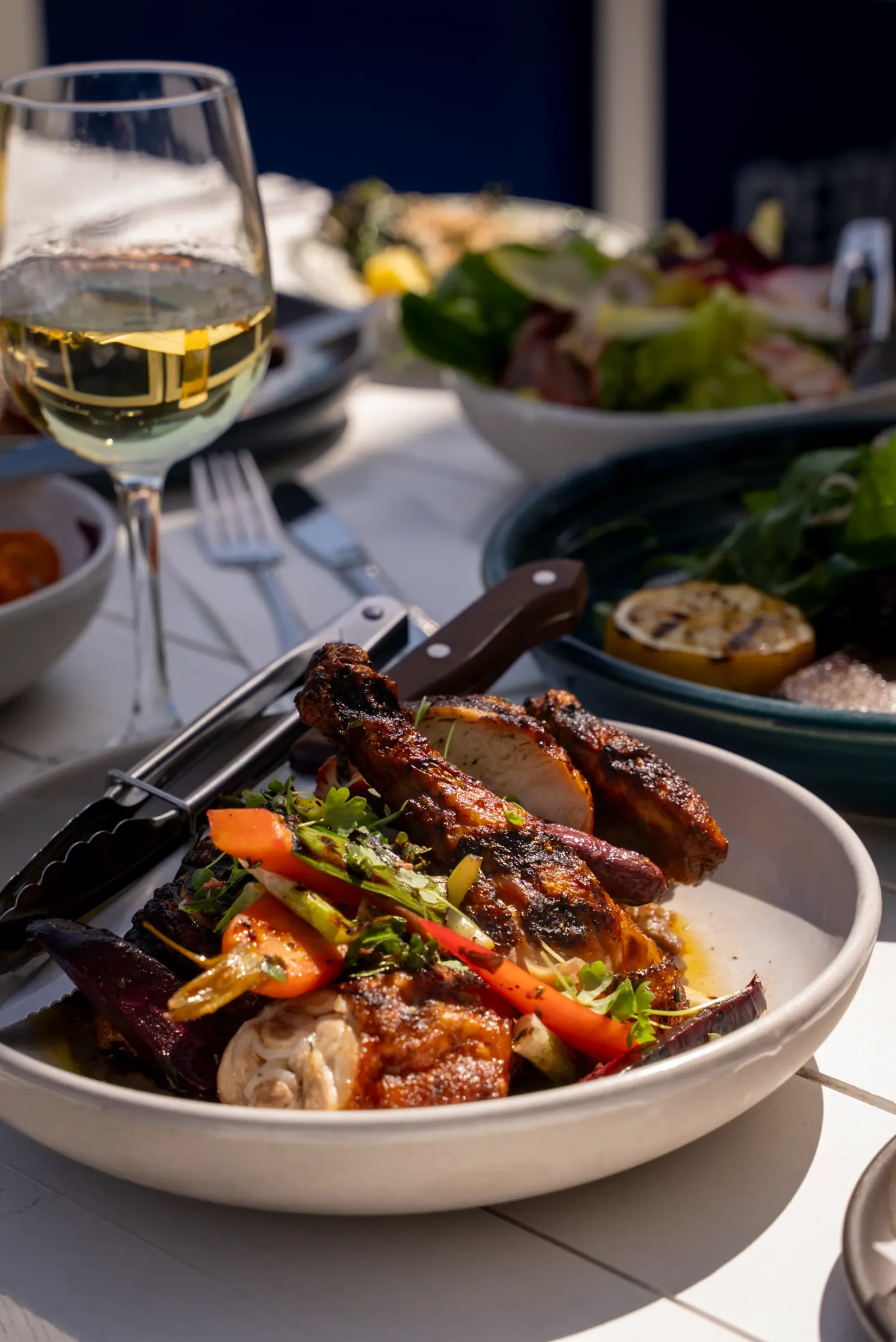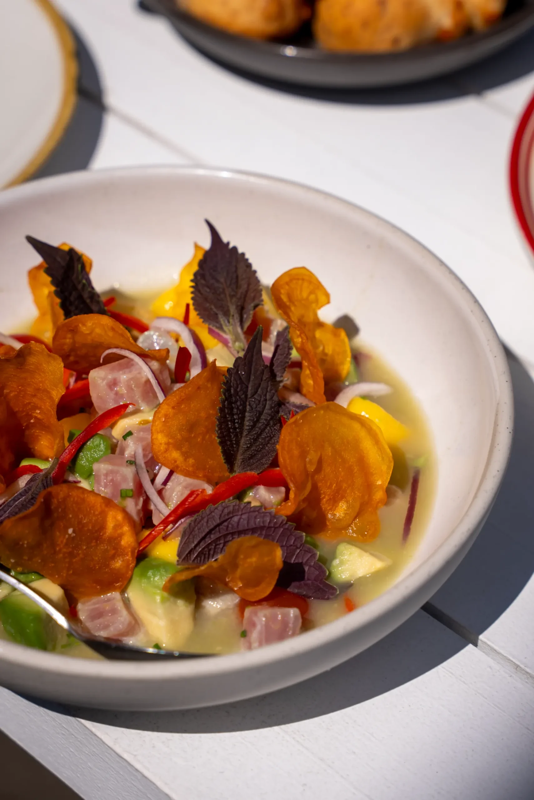 Ostras Naturales Aceitunas Chipas Fritas y Salsa Golf Ensalata de Burrata Y Tomate Croquetas Taco de Kingfish Ceviche de Atun Empanada de Cordero Empanada de Espinacas y Ricot Pan de Gambas Chorizo Criollo Costillas de Maiz Ahumado Verduras Asados y Quinoa Calamares Fritos Pollo a la Parilla Bistec de Solomillo Costillar de Res Costillar de Cordero Ensalada Mixta Ensalata de Col con Granada Papas Bravas Broccolini a la Parrilla Churros Tarta de Queso Vasca Quemada Helado de Alfajor
