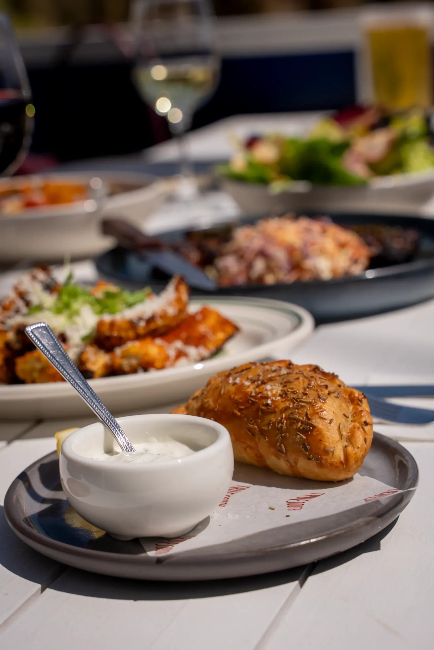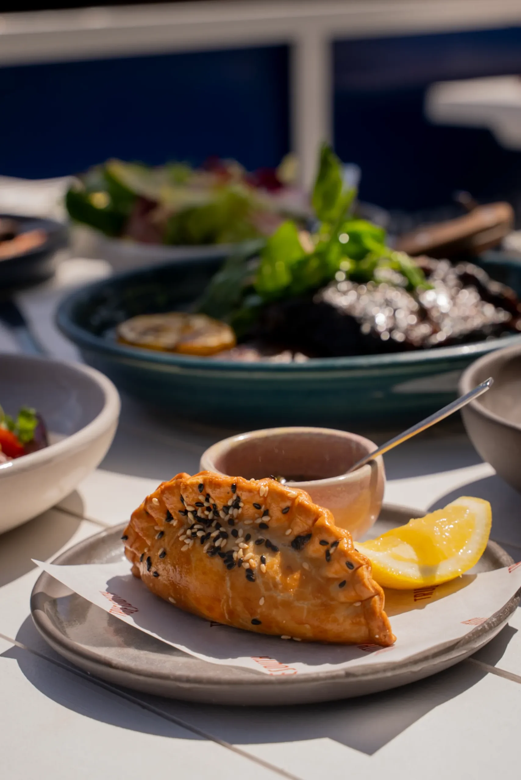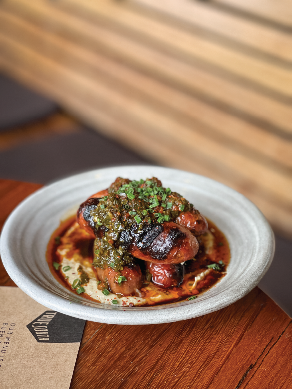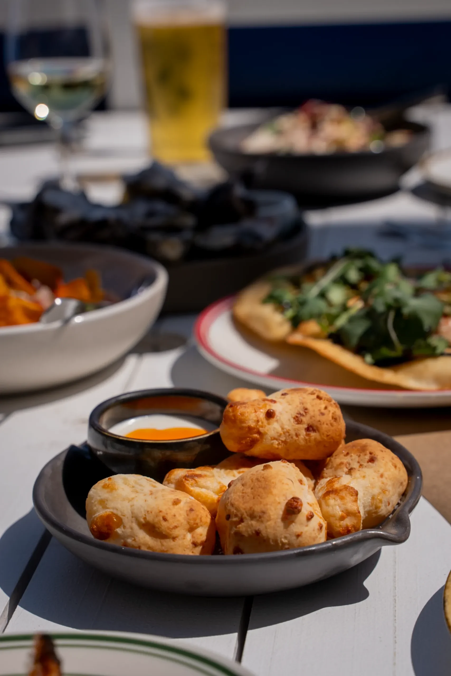 Ostras Naturales Aceitunas Chipas Fritas y Salsa Golf Ensalata de Burrata Y Tomate Croquetas Taco de Kingfish Ceviche de Atun Empanada de Cordero Empanada de Espinacas y Ricot Pan de Gambas Chorizo Criollo Costillas de Maiz Ahumado Verduras Asados y Quinoa Calamares Fritos Pollo a la Parilla Bistec de Solomillo Costillar de Res Costillar de Cordero Ensalada Mixta Ensalata de Col con Granada Papas Bravas Broccolini a la Parrilla Churros Tarta de Queso Vasca Quemada Helado de Alfajor